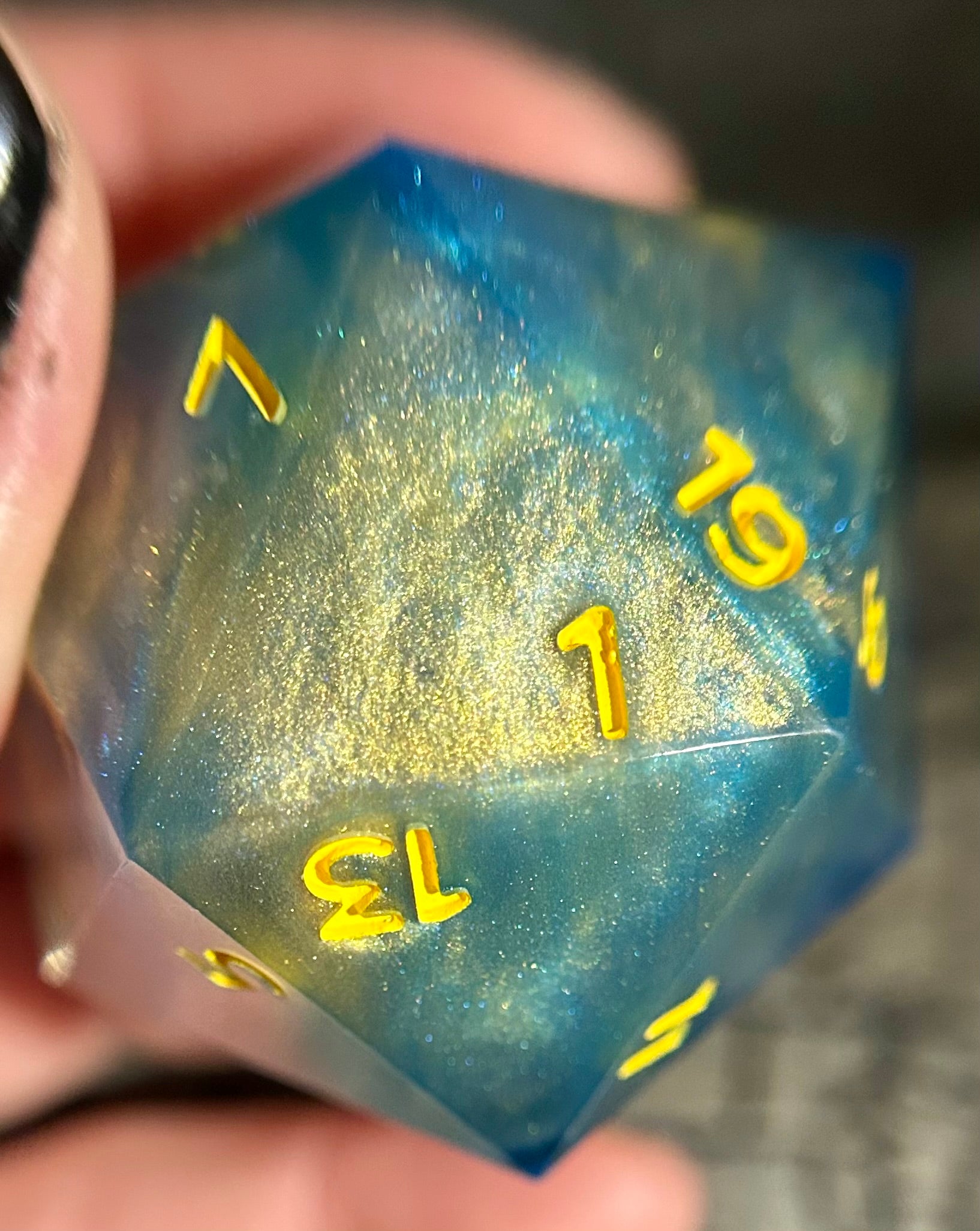 Due to the nature of handcrafted items, dice may contain small blemishes, scratches, or imperfections - we like to call these "maker's marks." These imperfections will not affect the balance or result of the dice in any way.