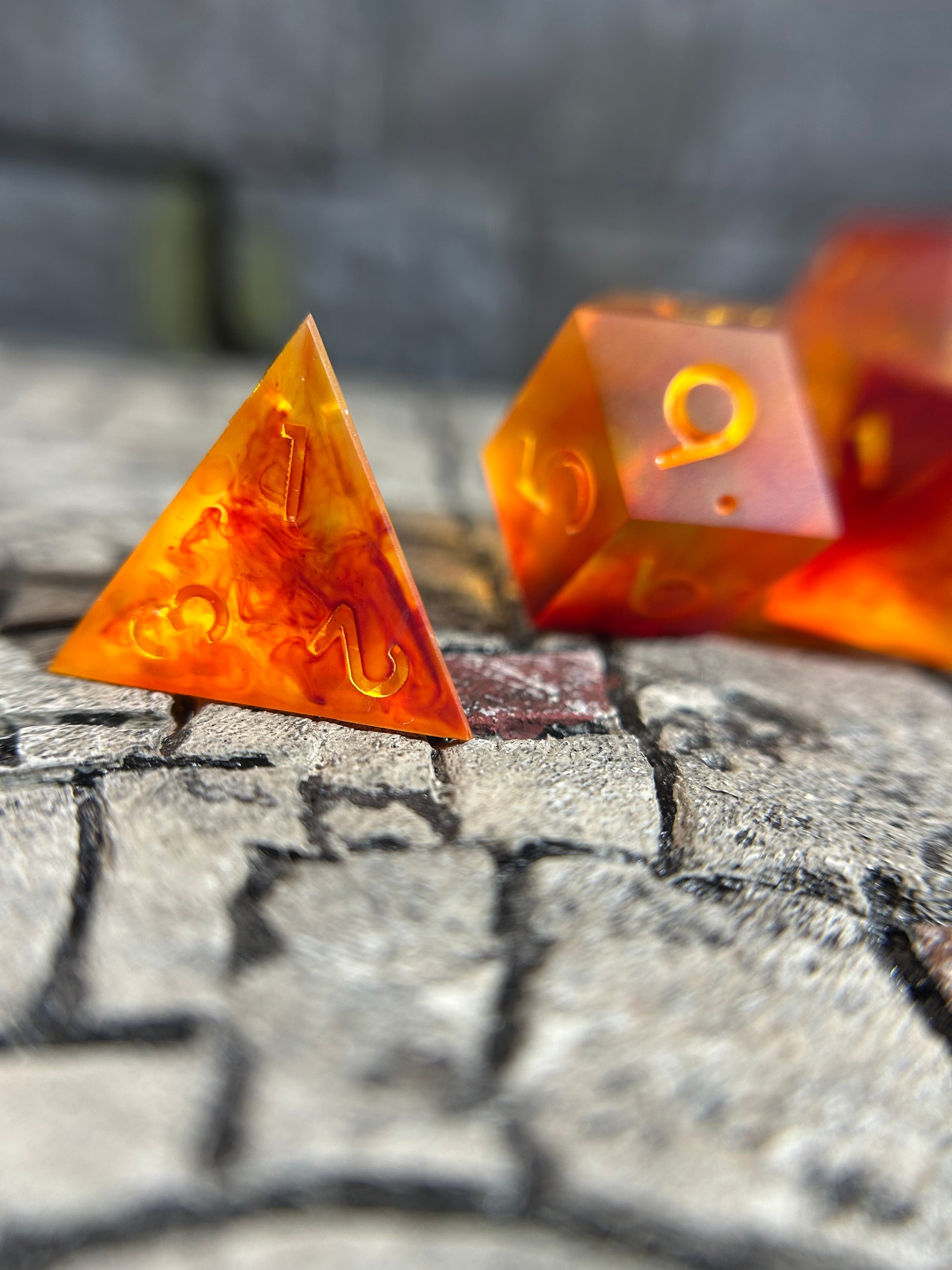 Frosted Fireball 8-Piece Polyhedral Dice Set