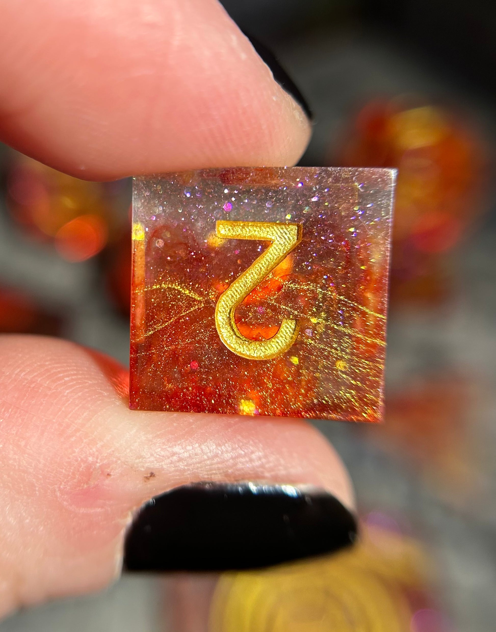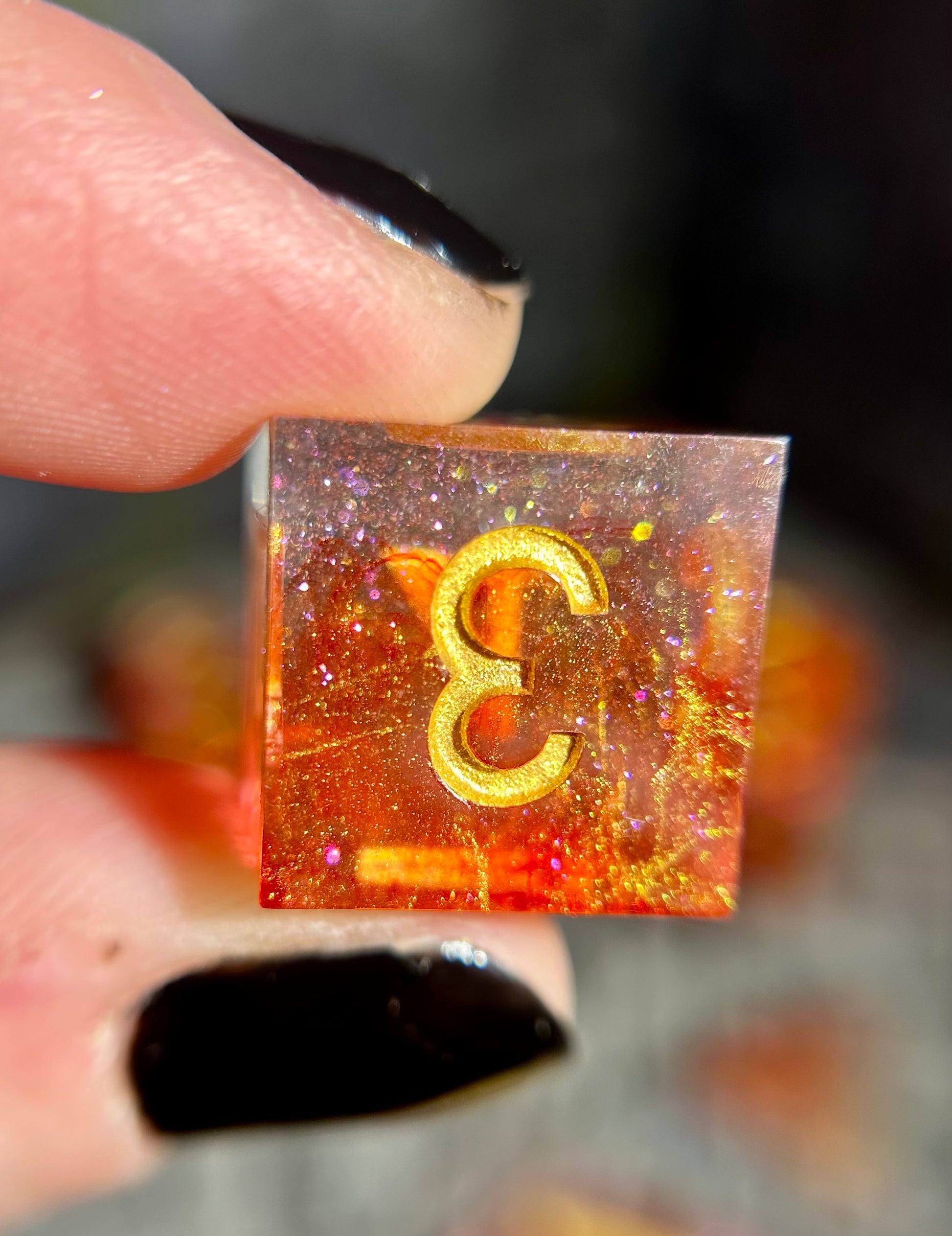 Due to the nature of handcrafted items, dice may contain small blemishes, scratches, or imperfections - we like to call these "maker's marks." These imperfections will not affect the balance or result of the dice in any way.